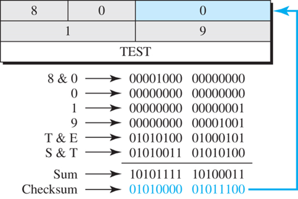 *예) 그림은 단순 에코 요구 메시지를 위한 검사합 계산의 예제를 보여준다.
