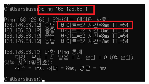 4) 에코 요청(echo request, 유형 8) 메시지와 에코 응답(echo reply, 유형 0)