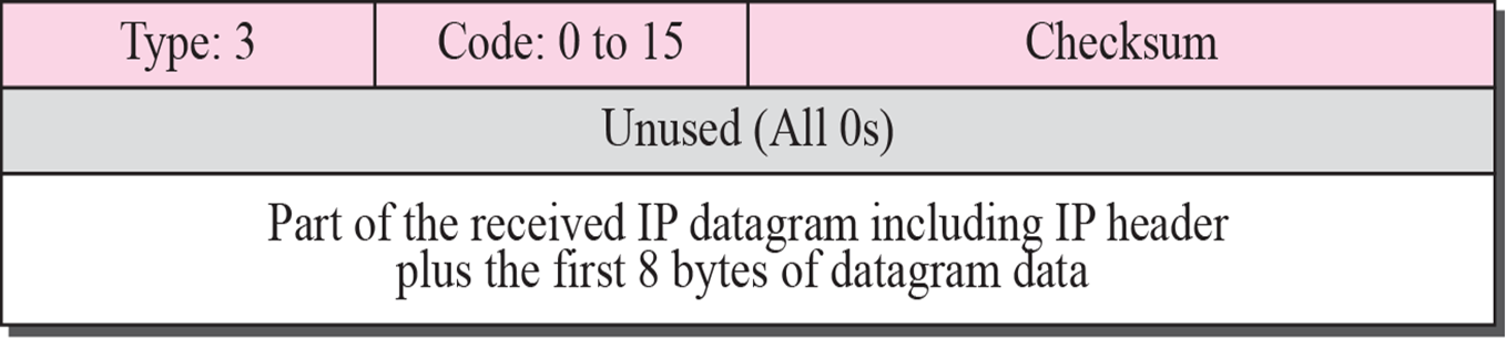 1) 왜 데이터그램이 최종 목적지에 도착하지 못했는지에 대한 오류 메시지의 유형을 나타내기 위해 0~15까지 서로 다른 코드를 사용한다.