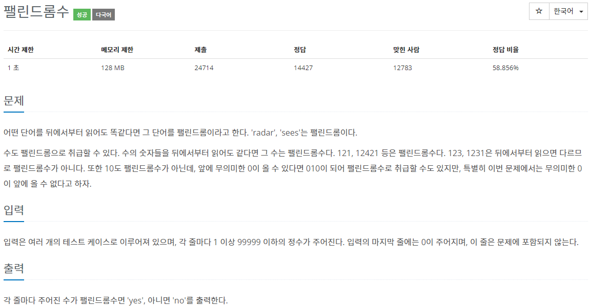 6. 문자열로 바뀐 수를 서로 비교해야한다. 만약 처음에 12321이라는 수를 입력 했다면